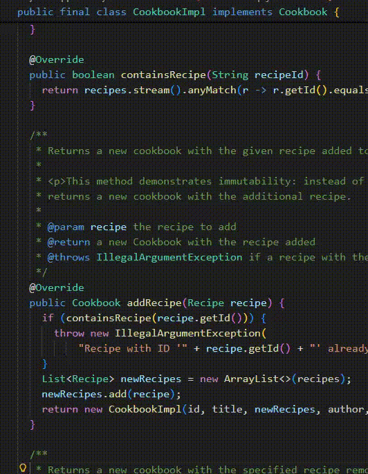 Starter code with 10+ interfaces: RecipeCollection, Cookbook, UserLibrary...