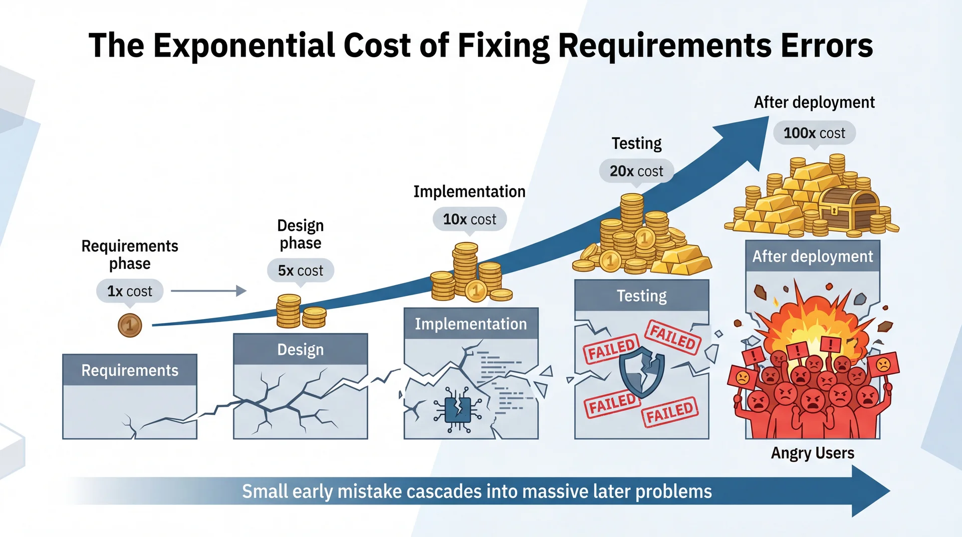 The Cost of Fixing Requirements Errors Grows Exponentially