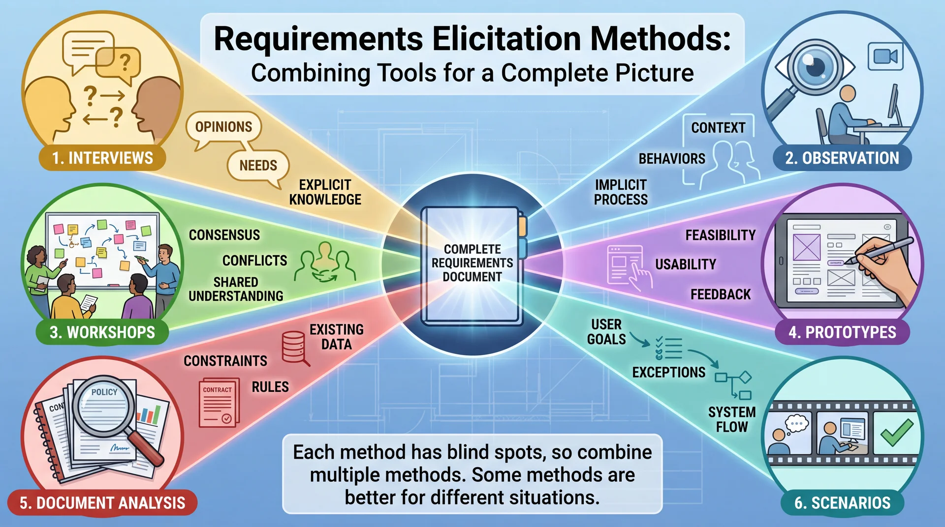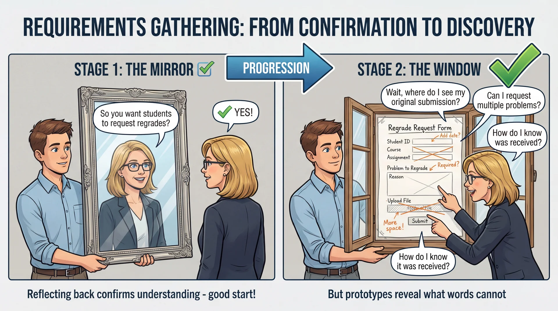 The key insight: Requirements analysis isn't asking "what do you want?"—it's understanding problems deeply enough to design solutions stakeholders didn't know were possible.