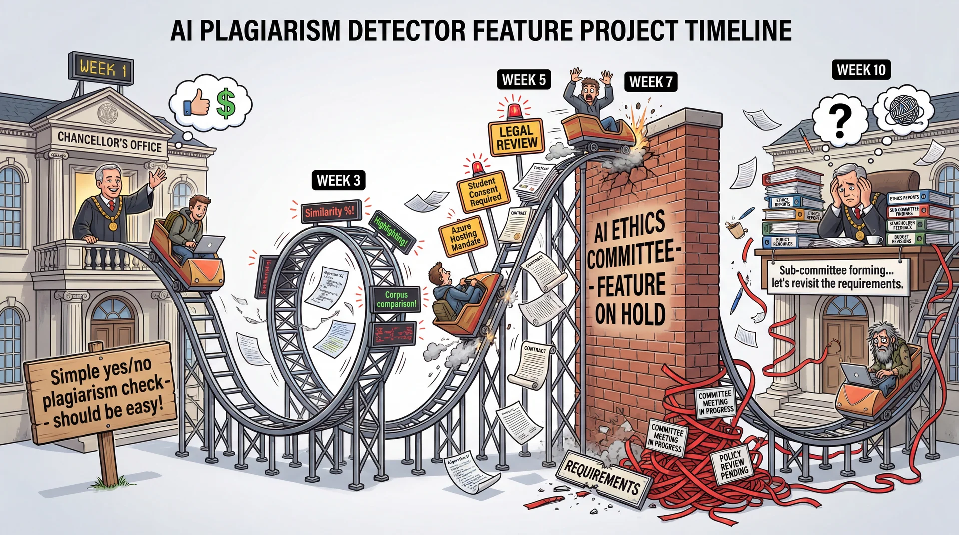 | Scope | HIGH | Training data, scaling to new assignments, ML pipeline, evaluation, legal review, appeals system |